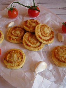 A tésztát feltekerjük és ujjnyi vastag csigákat vágunk belőle. Ezeket tegyük sütőpapírral bélelt tepsire, kenjük le a felvert tojásfehérjével és szórjuk meg a maradék reszelt sajttal. Előmelegített 180 fokos sütőben 20-25 perc alatt készülnek el. Könnyű elkészíteni és nagyon fincsi, jó étvágyat! :))