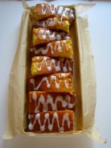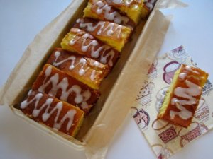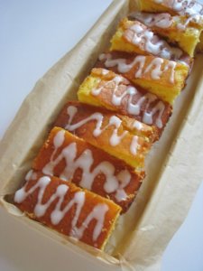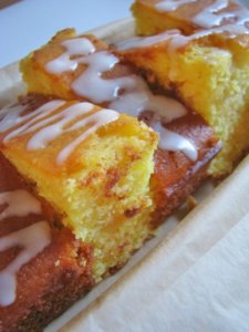 A langyosra hűlt sütit egy fogpiszkáló segítségével szurkáljuk meg, és erre öntsük rá a meleg szirupot. A sütit takarjuk le és hagyjuk magára 2-3 órára, amíg teljesen be nem szívja az édes szirupot. Hosszúkás szeletekre vágva tálaljuk!