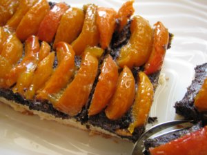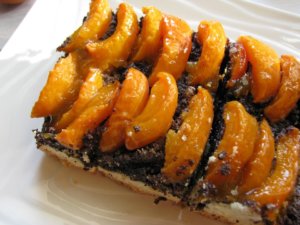 A barackokat vágjuk fel vékony cikkekre. Ha tészta elősült, a tetejét kenjük le a mákréteggel. Erre pakoljuk rá a barackot és rakjuk vissza a sütőbe további 40 percre. Amikor elkészült vegyük ki és a baracklekvárt mikróban melegítsük fel. A még forró süti tetejét kenjük le vele, hogy szép fényes színt kapjon. Hagyjuk teljesen lehűlni és ezután szeleteljük!