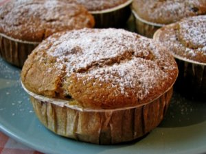 Az elkészült masszát kanalazzuk muffin sütő tepsibe (tehetünk alá muffin papírt is), és 170 fokra előmelegített sütőben süssük 35 percig. A tetejét hintsük meg por eritrittel, vagy porcukorral.