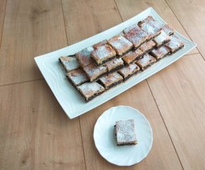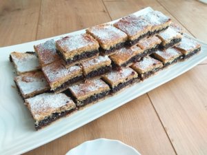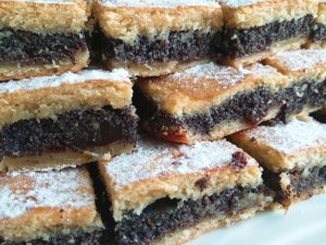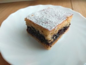 A tésztát felezzük el. Az egyik felét enyhén lisztezett felületen nyújtsuk ki és tegyük egy kivajazott tepsibe. Egy villával szurkáljuk meg és kenjük meg házi szilvalekvárral. Ezután kenjük rá a mákos tölteléket és a helyezzük rá a másik kinyújtott tésztalapot. Kenjük le a tésztát felvert tojással és süssük a 180 fokra előmelegített sütőben 35 percet. Langyosan szórjuk meg porcukorral, ha kihűlt szeleteljük.