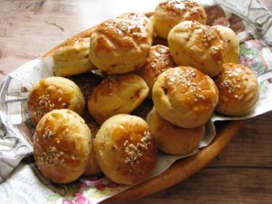 Tudom, megint pogácsa…de mit is tehetek, ha a családomnak ez az abszolút favorit? Különösen apukám szereti ezeket a sós, abbahagyhatatlan, apró finomságokat. Most vasárnap apák napja van és mi mást is készíthetnék neki, mint egy jó pogácsát, egy kis különlegességgel „megfűszerezve”? Mindenféle szégyenkezés, és egészségtudatosság mellett lobbizva bevallom, hogy apukám bizony a frissen sült pogácsa mellett a jó minőségű házi kolbásznak sem tud ellentmondani…:D A neves ünnep alkalmából kombináltam ezt a két kedvencét és nagyon ízlett neki! Azt a bókot is megkaptam tőle, hogy ez bizony olyan finom, hogy egy pékségben is bőven megállná a helyét… nekem pedig ennél nagyobb dicséretre nincs is szükségem! 😉 Köszönöm apu!