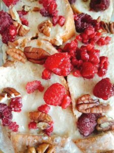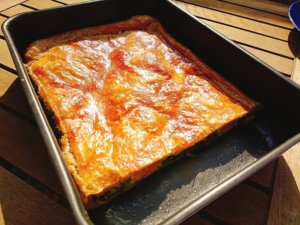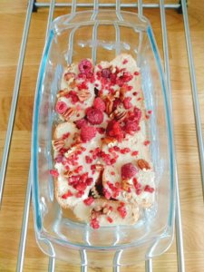 A még meleg tésztát öntözzük meg forró vaníliás tejjel. Langyosan tálaljuk! 🙂 Jó étvágyat!